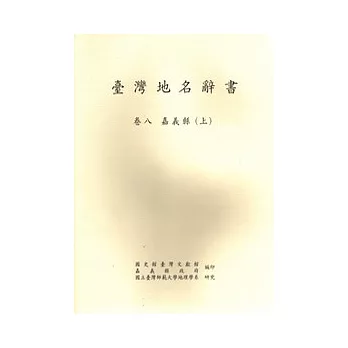 臺灣地名辭書卷8嘉義縣(上下不分售)